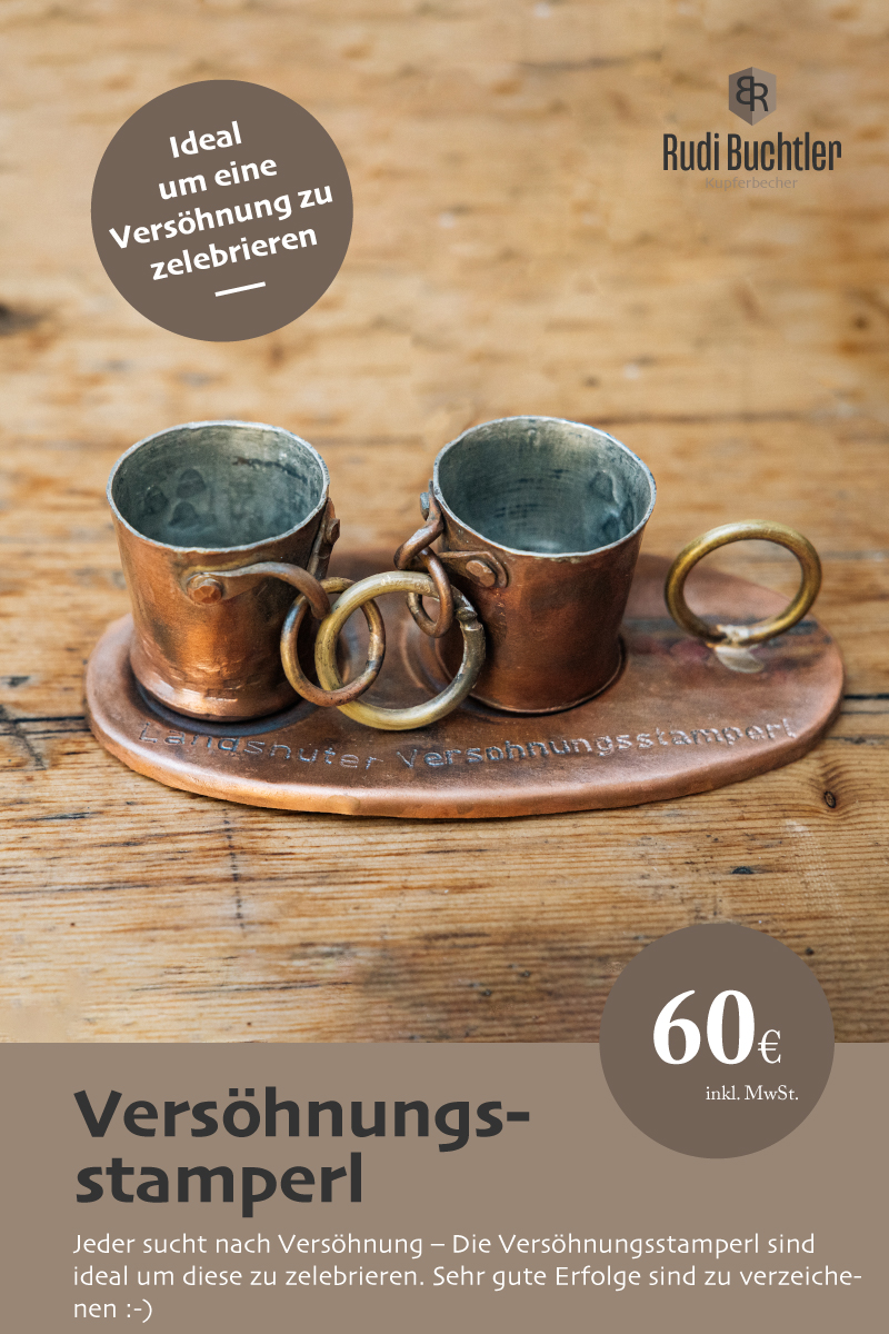 Die handgefertigten Kupferbecher von Rudi Buchtler sieht man alle vier Jahre in Landshut an jeder Ecke, egal ob bei Mitwirkenden der Landshuter Hochzeit oder bei den Besuchern auf den Tribünenfesten.